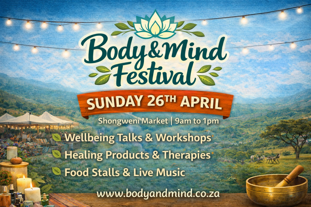 Join us for the Body & Mind Festival at the beautiful Shongweni Farmers Market on Sunday, 26 April From 8am to 1pm, experience a vibrant morning of healing, connection, and community.